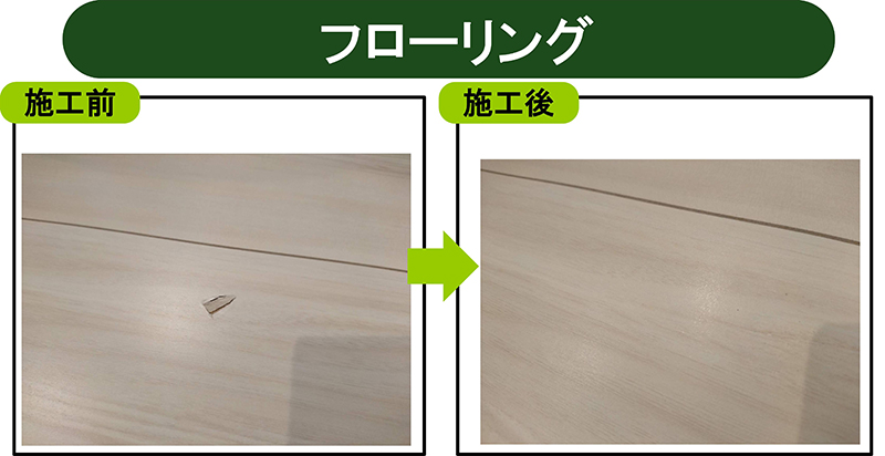 フローリングのリペアやアルミサッシの補修、クロス補修など多種多様なリペア技術があります。お家のお悩みごとはマルヒラ屋にお任せください!